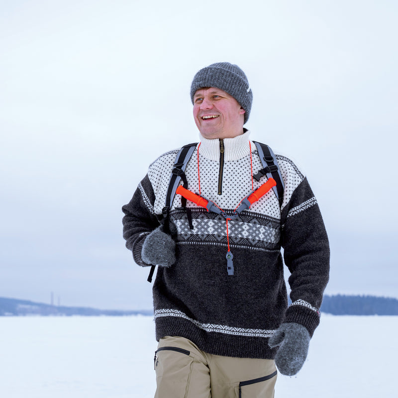 Meiltä löydät turvalliseen jäällä liikkumiseen laadukkaat liukuesteet ja jäänaskalit. Lämpimät, kotimaiset merinovilla-asusteet pitävät ulkoilijan mukavan lämpimänä talven tuiskuissa. Retkireppuun kannattaa pakata termokseen kuumaa juotavaa ja vaikkapa herkullista keittoa. Valikoimastamme löytyvät myös tulentekovälineet, nuotiopannu sekä makkaratikut tunnelmallisia nuotiohetkiä varten.