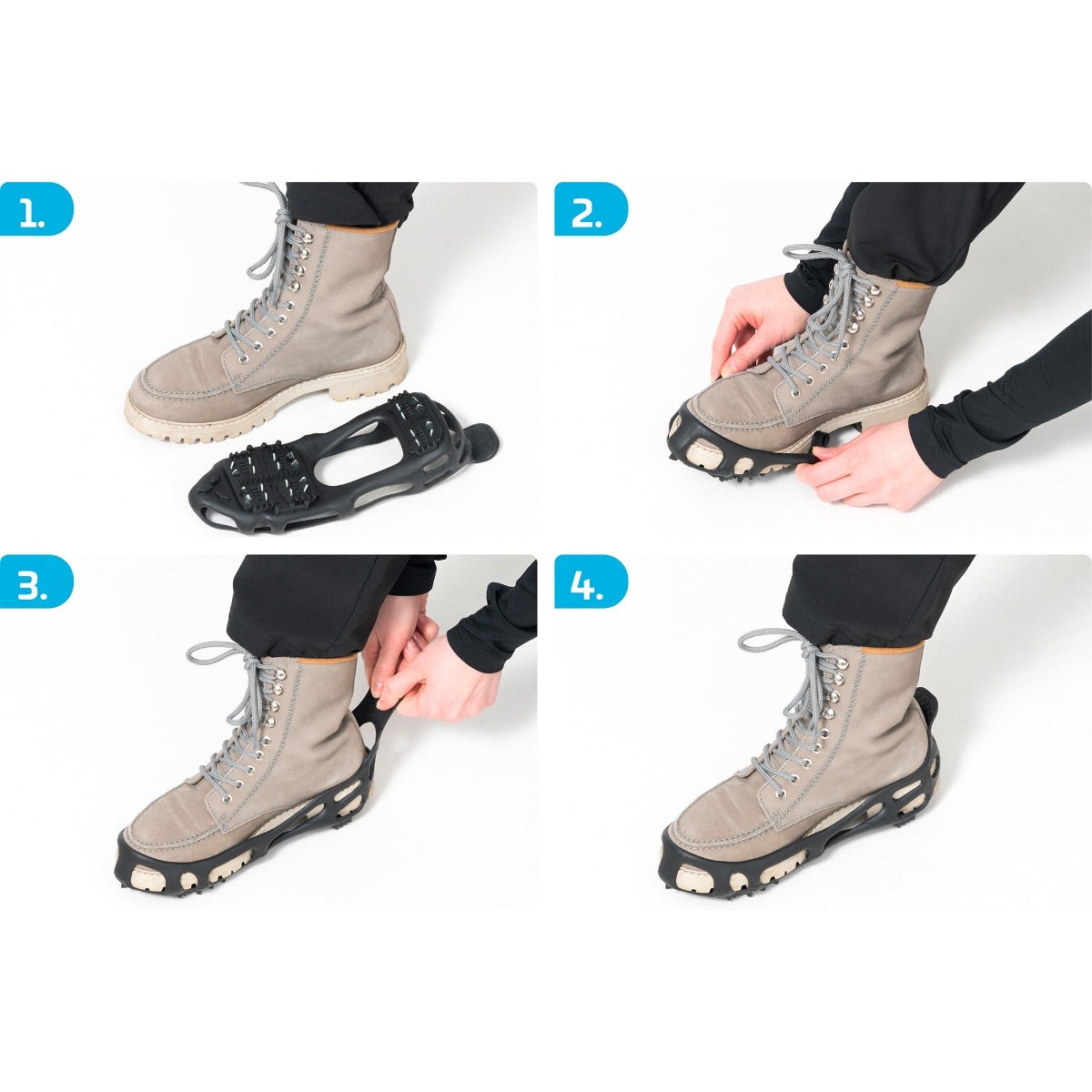 Helppokäyttöiset jääkengät talviulkoiluun. Hyvä pito liukkaalla jäällä ja pakkautuneella lumella.
