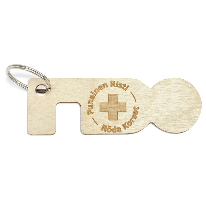 Avaimenperään on kaiverrettu Punaisen Ristin logo.