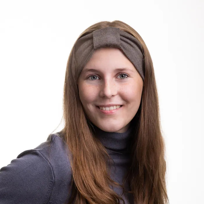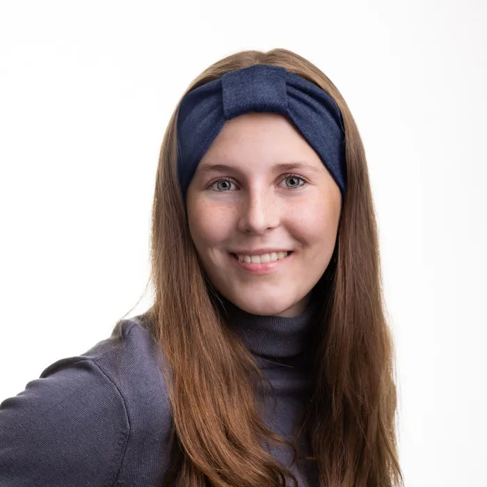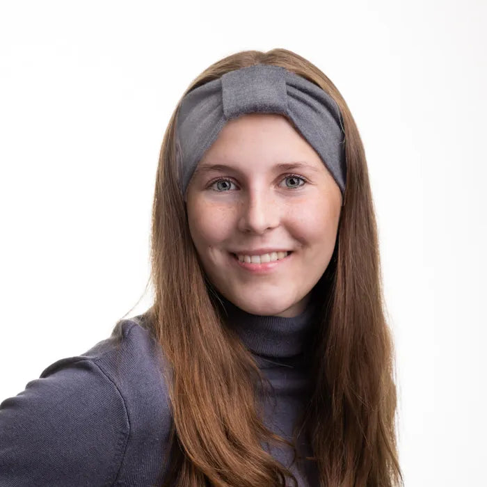 Huvudband i 100 % merinoull, stickat i ett stycke. En storlek. Sytt i Finland.