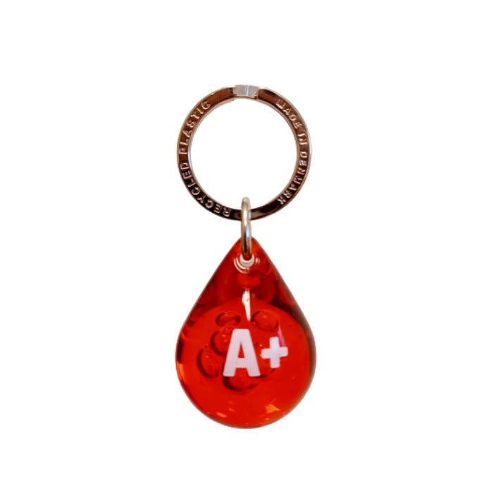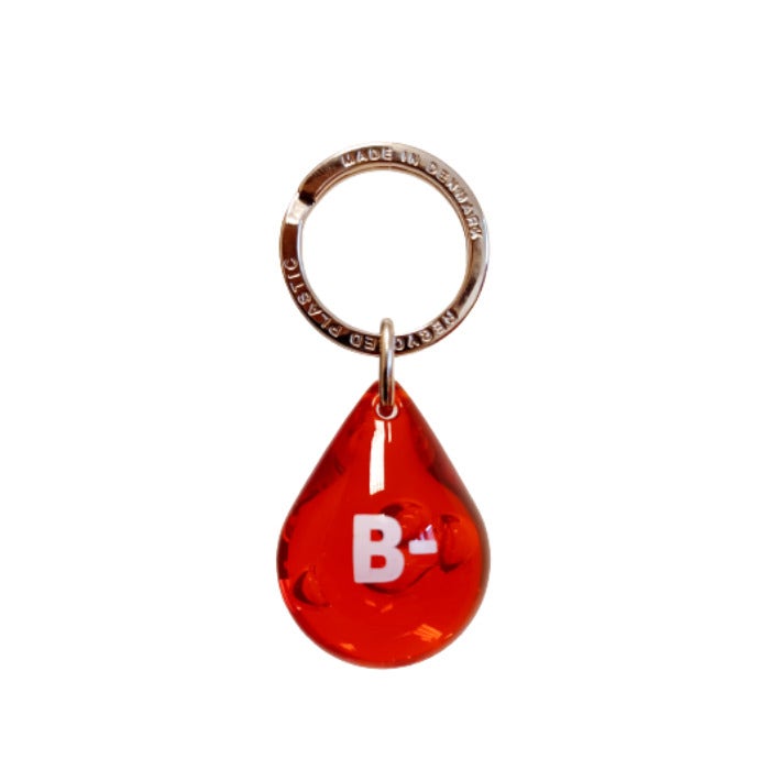 Vilken är din blodgrupp? På Pisara-nyckelringen är blodgruppsmärket tryckt, välj din! Varje Pisara är speciell – och lika viktig. Luftbubblorna inuti akrylen gör varje nyckelring unik. Om du inte vet din blodgrupp, kan du ta reda på det genom att donera blod.