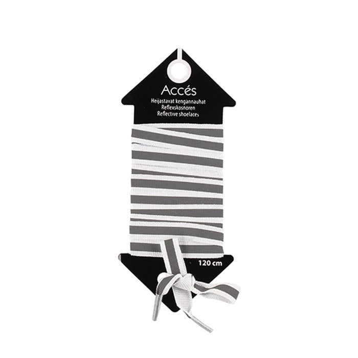 Det reflekterande skosnöret i fritidsskor för utomhusbruk ger en ljusglimt i mörkret. Produkten är inte en personlig skyddsutrustning. Använd alltid även i mörker en CE-märkt reflex eller reflexväst.