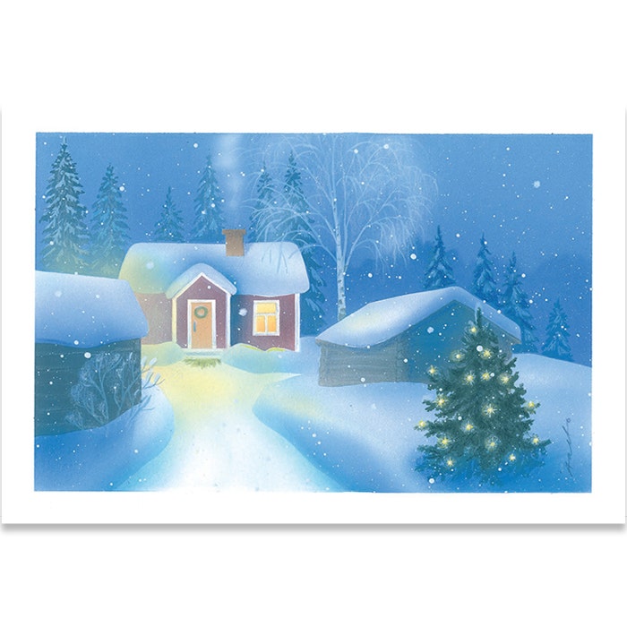 Julkort Jul i mormors stuga, 10 st affärstext på finska