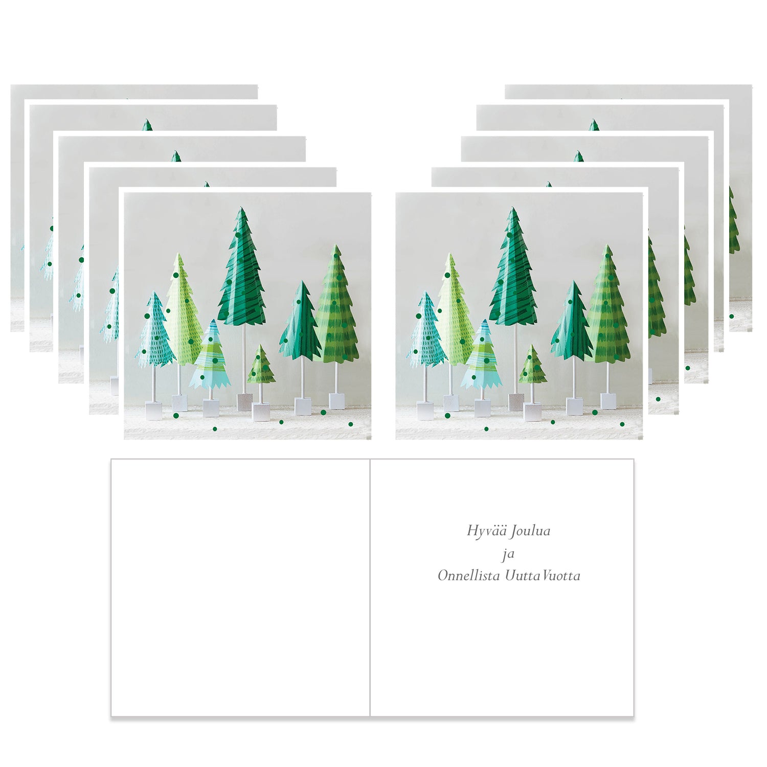 10 vikta julkort med finsk text "Hyvää Joulua ja Onnellista Uutta Vuotta". Det finns plats... Lue lisää Näytä vähemmän