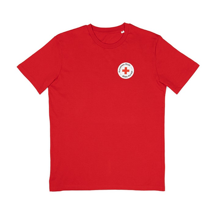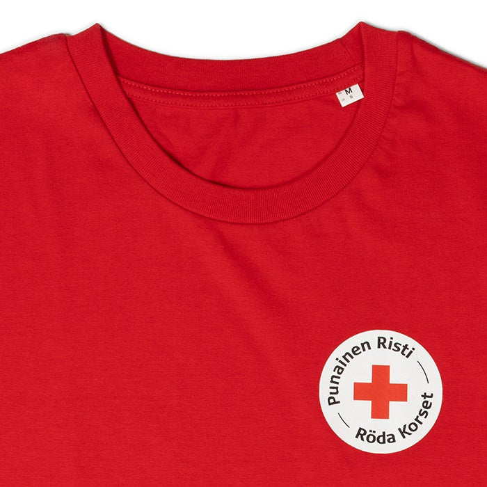 Rakskuren t-shirt med Röda Korsets produktsymbol på bröstet. Certifierad ekologisk bomull.