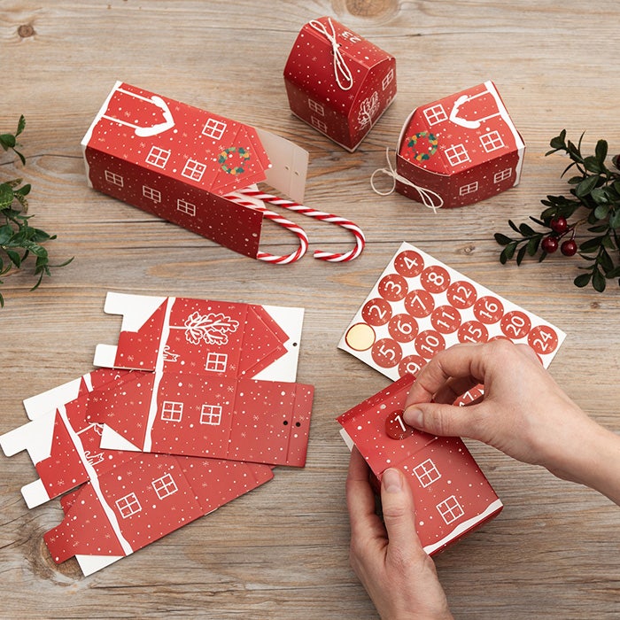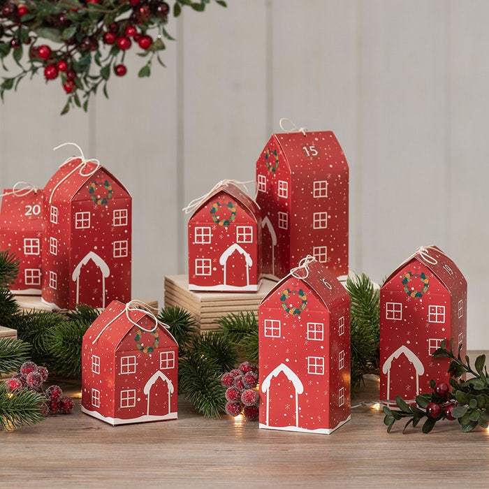 Du kan sätta ihop julkalendern genom att sätta en liten överraskning inne i varje hus, eller bara använda den för att dekorera och skapa julstämning.