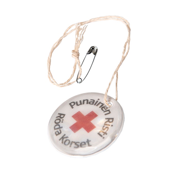 På ena sidan av den mjuka reflexen finns jordgloben och på den andra sidan Finlands Röda Kors emblem. Reflexen är CE-godkänd och tillverkad i Finland. I förpackningen ingår säkerhetsnål och snöre.
