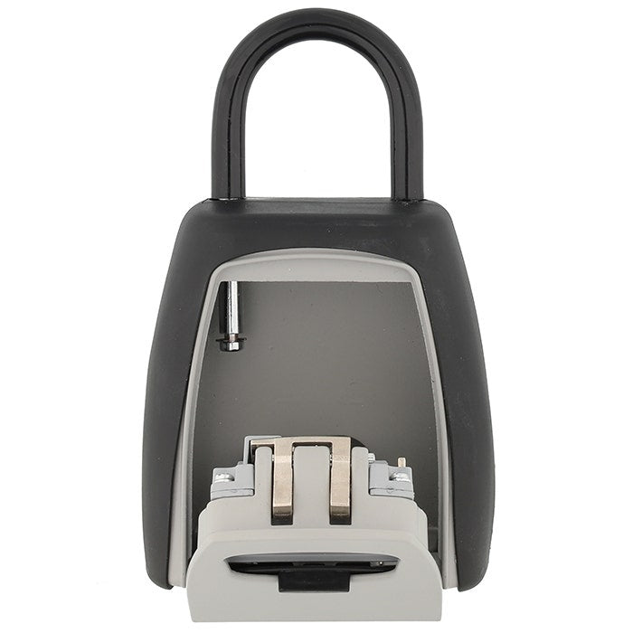 Nyckelgömma med 4-siffrigt kombinationslås. Till exempel för förvaring av en reservnyckel inomhus och utomhus. Produkten har en hängare som gör att den kan hängas eller låsas på samma sätt som ett hänglås.