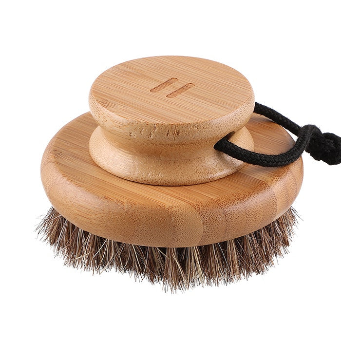 Massera din hud ren med den milt exfolierande bambuborsten och din favorittvål eller torrborsta huden innan bad. Samtidigt stimulerar du blodcirkulationen på ytan av huden! Borstens runda former och med bambuolja behandlade ytan känns bra i handen. Borstmaterialet är hästman.