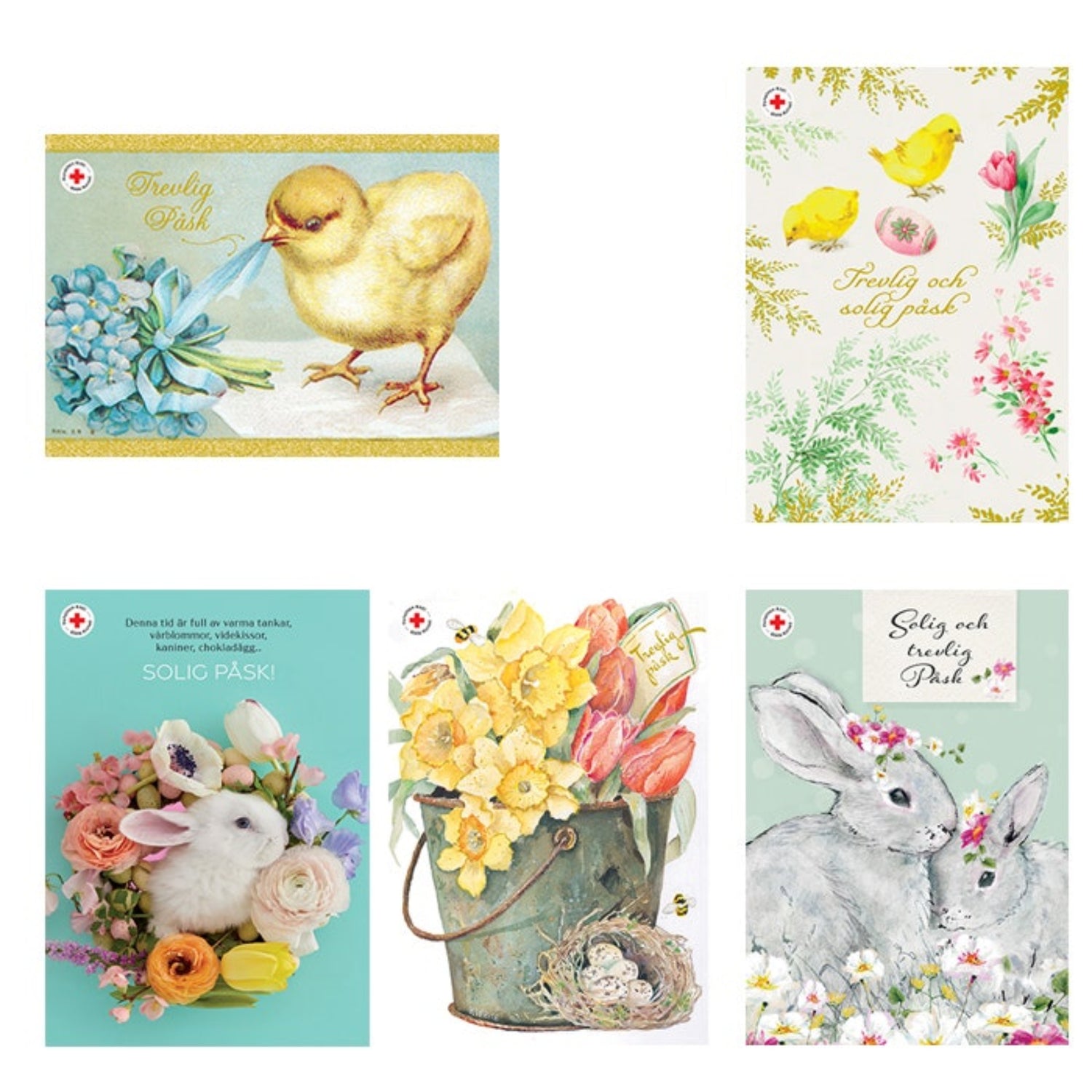 Förpackningen innehåller 5 olika kort med svensk text. Portot är betalt.