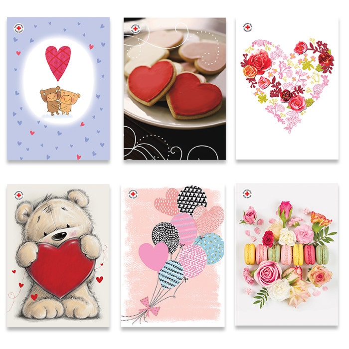 Ljuva och hjärtliga motiv, 6 kort utan text. Lämplig för gratulationer eller glada hälsningar.