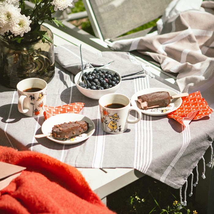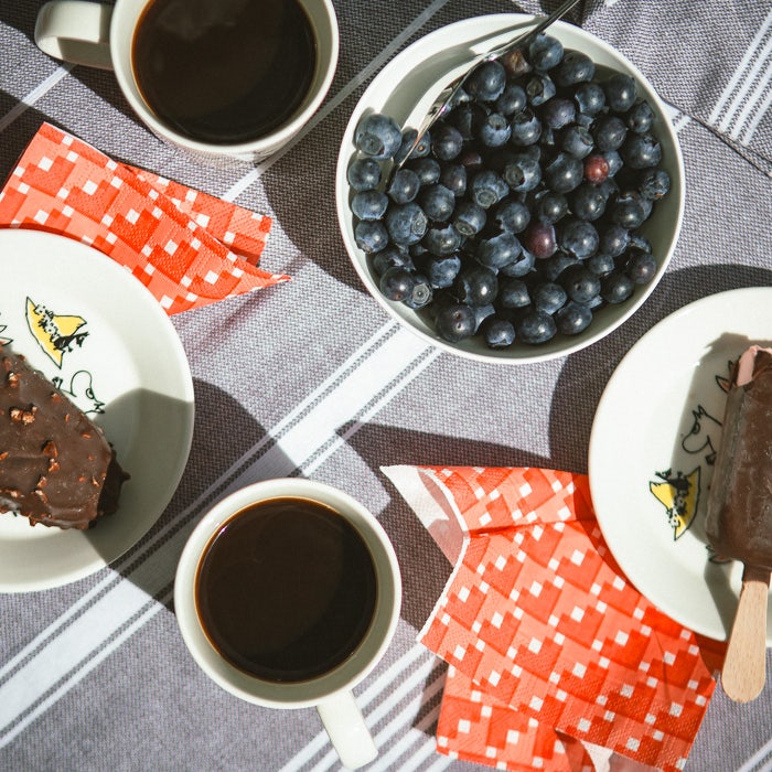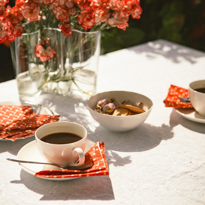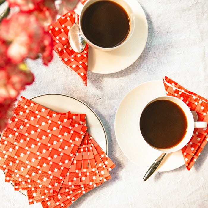 Duka fest- eller vardagsbordet med vackra servetter med Röda Korsets Hjälpande steg -mönster. Dessa servetter, som är 24 x 24 cm stora och tillverkade i Finland, passar bra för både måltider och kaffebord. Förpackningen innehåller 20 servetter.