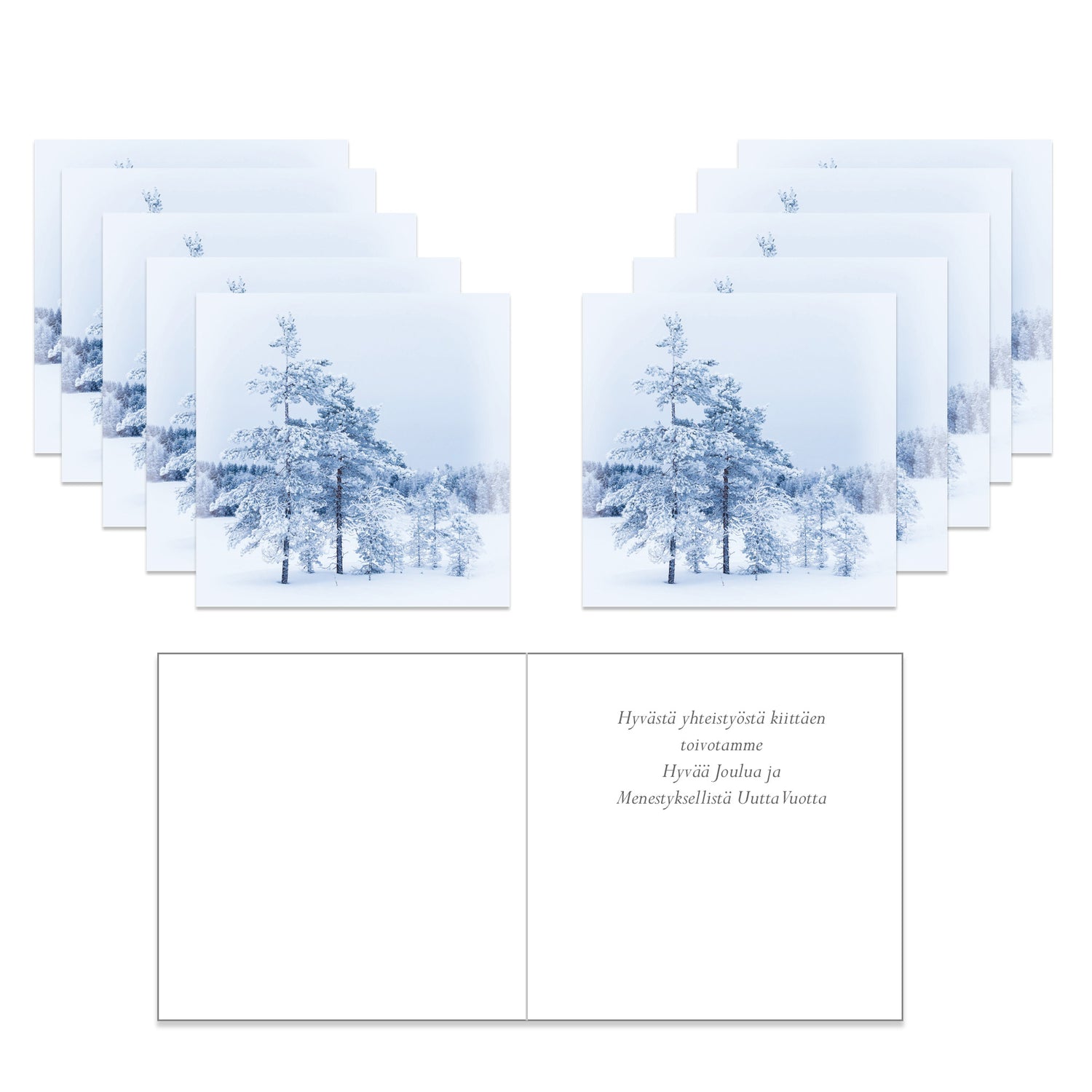10 st vikta julkort, inga kuvert. Texten på korten på finska "Hyvästä yhteistyöstä kiittäen toivotamme Hyvää Joulua ja Menestyksellistä Uutta Vuotta".