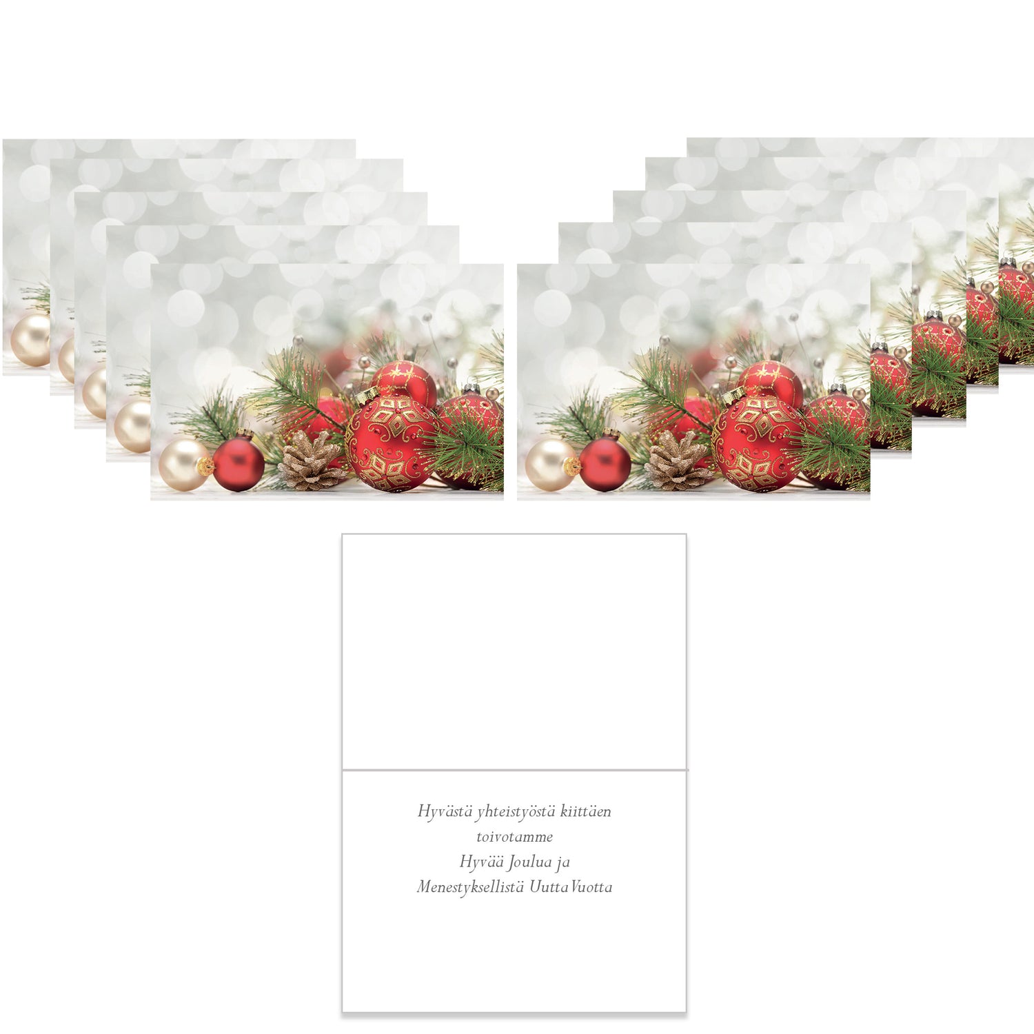 Joulukorttinippu 10 kpl Joulupallot yritystekstillä