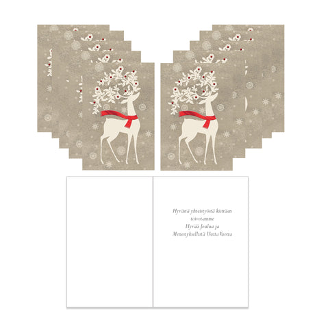 Normalpris 10,00€Enhetspris /OtillgängligJoulukorttinippu 10 kpl Jouluinen poro, yritystekstillä