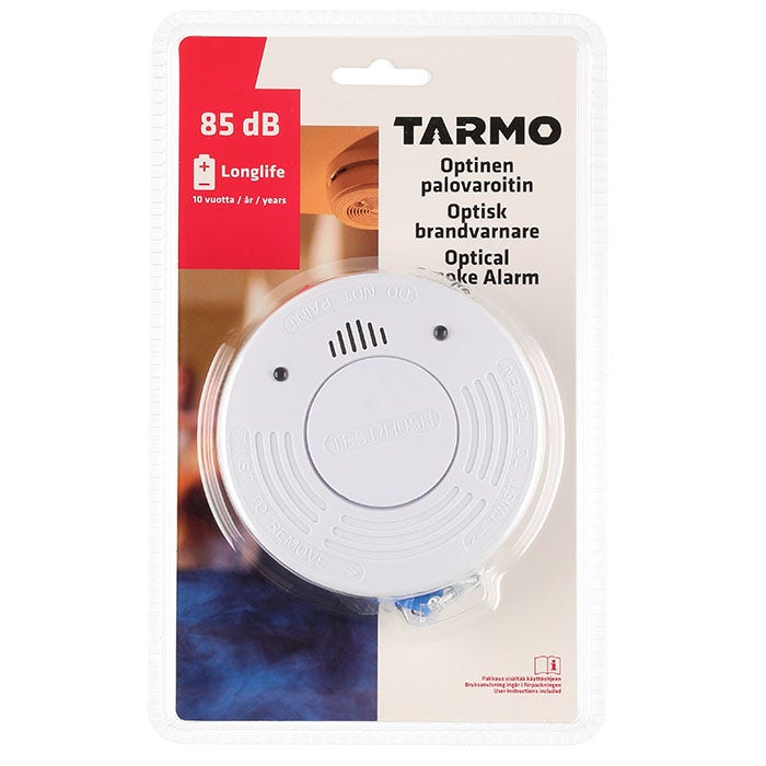 Optiskt brandlarm med fast batteri som har en livslängd på ca 10 år.