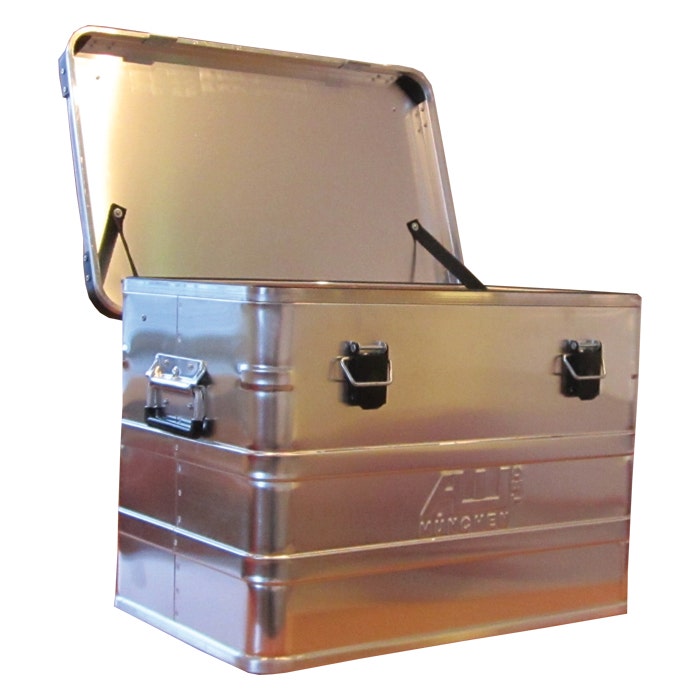 Material aluminium, yttre mått 58 x 38,5 x 41 cm, inre mått 55 x 35 x 38,1 cm.