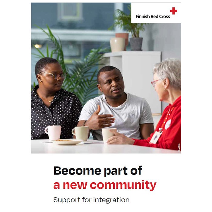 Broschyren "Att bli en del av det nya samhället – Stöd för integration" ger tips om hur man kan organisera integrationsfrämjande aktiviteter i avdelningen. Broschyren beskriver de centrala modellerna för Röda Korsets frivilligverksamhet som stöder integration och ger idéer om hur man kan genomföra dem.