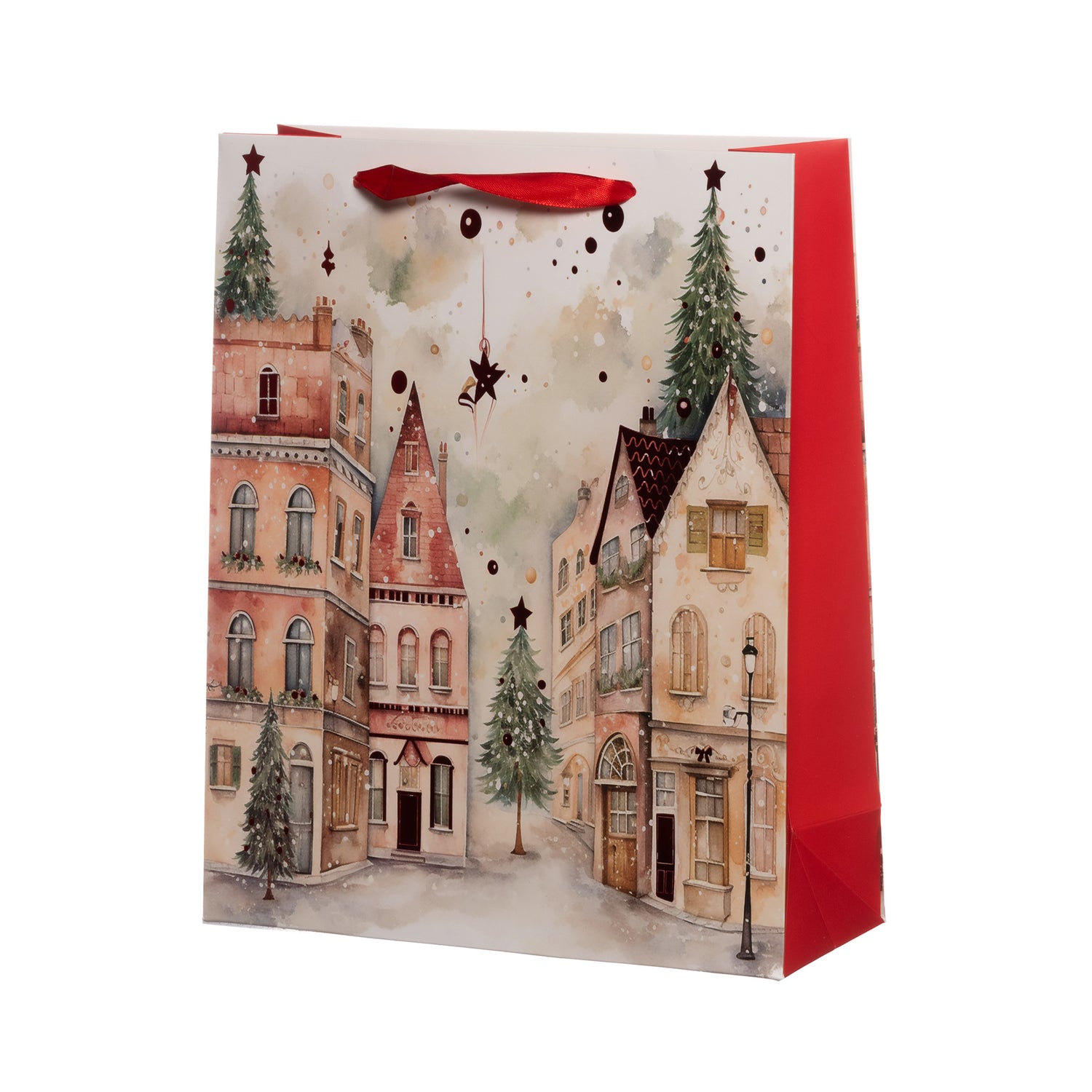 Tunnelmallisesti kuvitettu lahjakassi helpottaa ja nopeuttaa paketointia. Koko 26 x 10 x 32 cm.