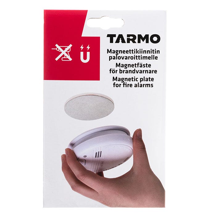 Speciellt avsett för fastsättning av brandvarnare. Inget behov av att borra eller skruva. Fäst det andra självhäftande bottnet i taket och det magnetiska bottnet på baksidan av brandvarnaren och placera den på plats i taket.
