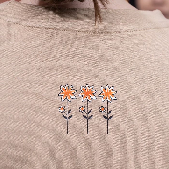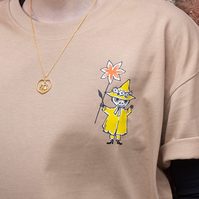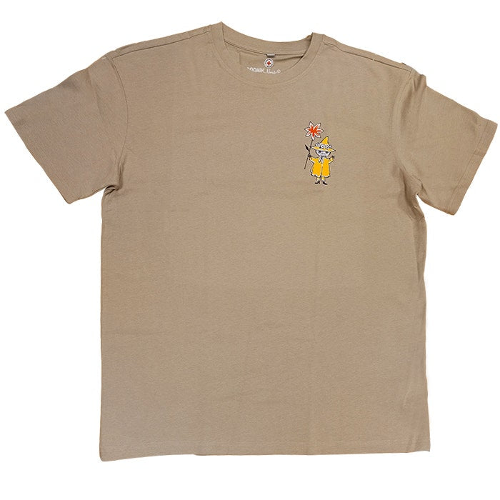 Aikuisten unisex-mallinen t-paita muumikuvituksella. Tove Jansson piirsi kuvan jo 60-luvulla Punaiselle Ristille ja nyt Nuuskamuikkunen ja sympaattinen oranssi kukka koristavat uutta t-paitaa!