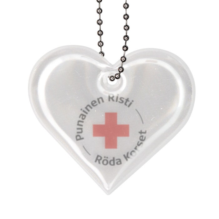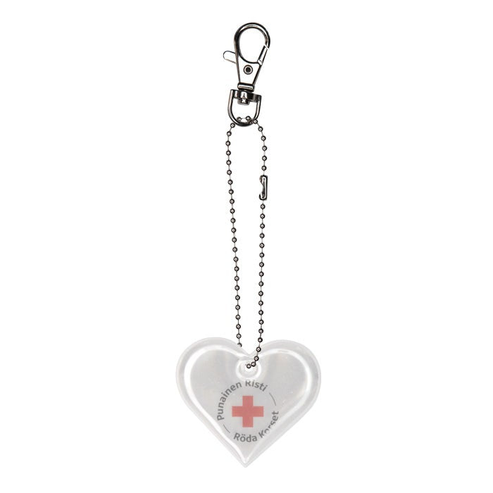 Inhemsk, högkvalitativ reflex med Röda Korsets logotyp. Tryck på båda sidor av reflektorn. Reflexen levereras med en kedja och ett papegojlås.