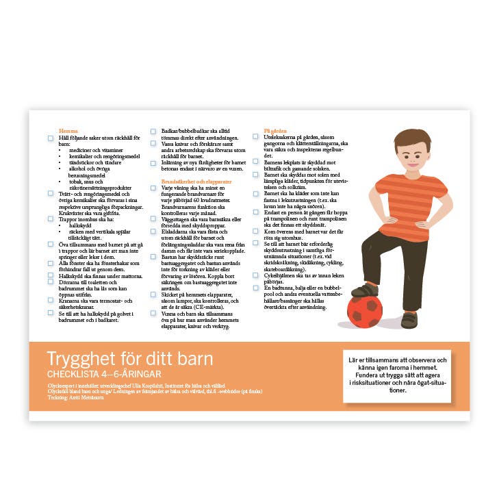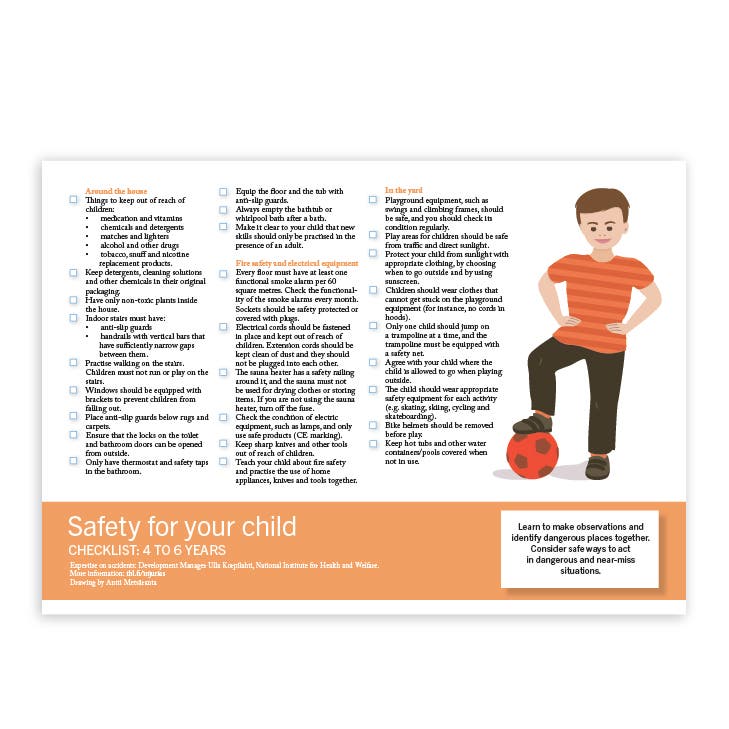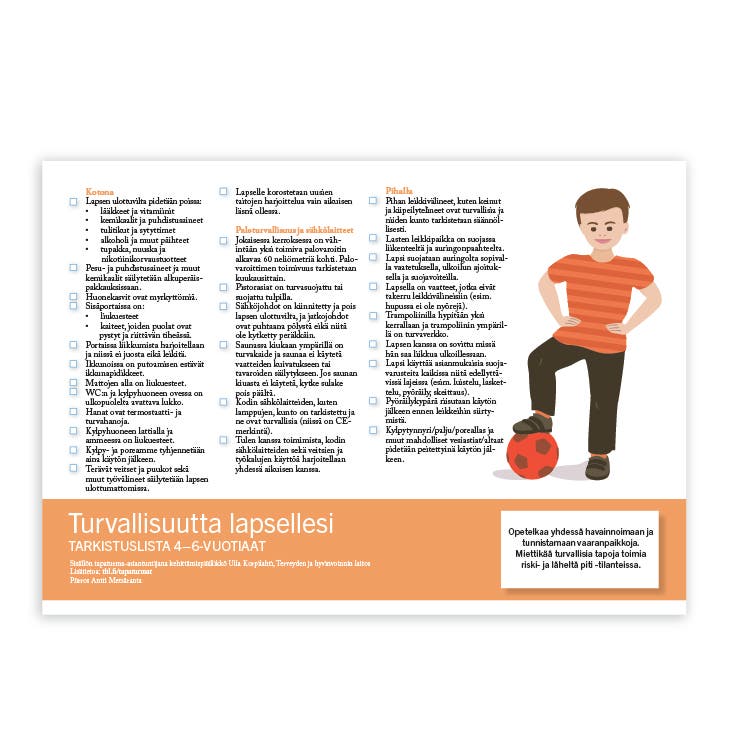 Tarkistuslista tapaturmien ehkäisyyn alle kouluikäisillä lapsilla. 2-puoleinen. Tilataan lehtiöittäin, jossa 25 tarkistuslistaa. Lue lisää Näytä vähemmän
